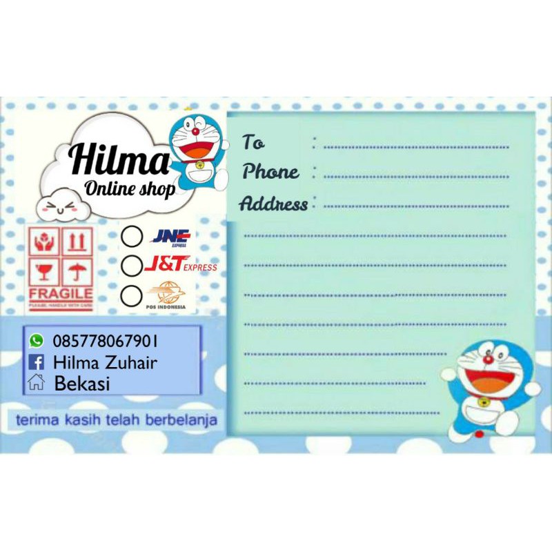 (ISI 100 PCS) LABEL PENGIRIMAN DORAEMON