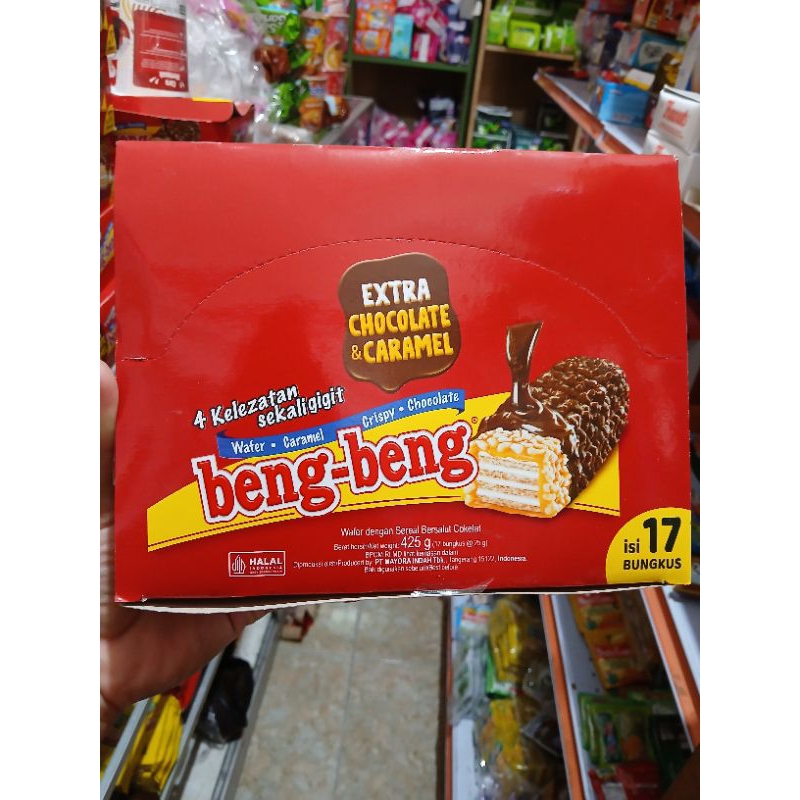 beng beng wafer caramel crispy coklat isi 17pcs.