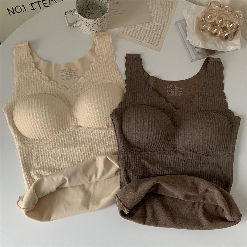 ITOOLIN зимние плюшевые утолщенные тонкие женские теплые бархатные майки с резьбой и подкладкой для бюстгальтера для женщин