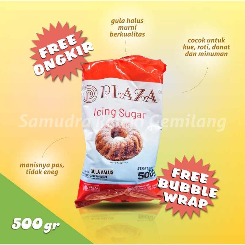 Plaza Icing Sugar adalah gula halus yang dapat digunakan untuk dekorasi kue, campuran adonan kue, atau topping kue, tart, dan cookies. Berikut adalah beberapa deskripsi Plaza Icing Sugar: Berat: 500 gram, Cara penyimpanan: Suhu ruang.