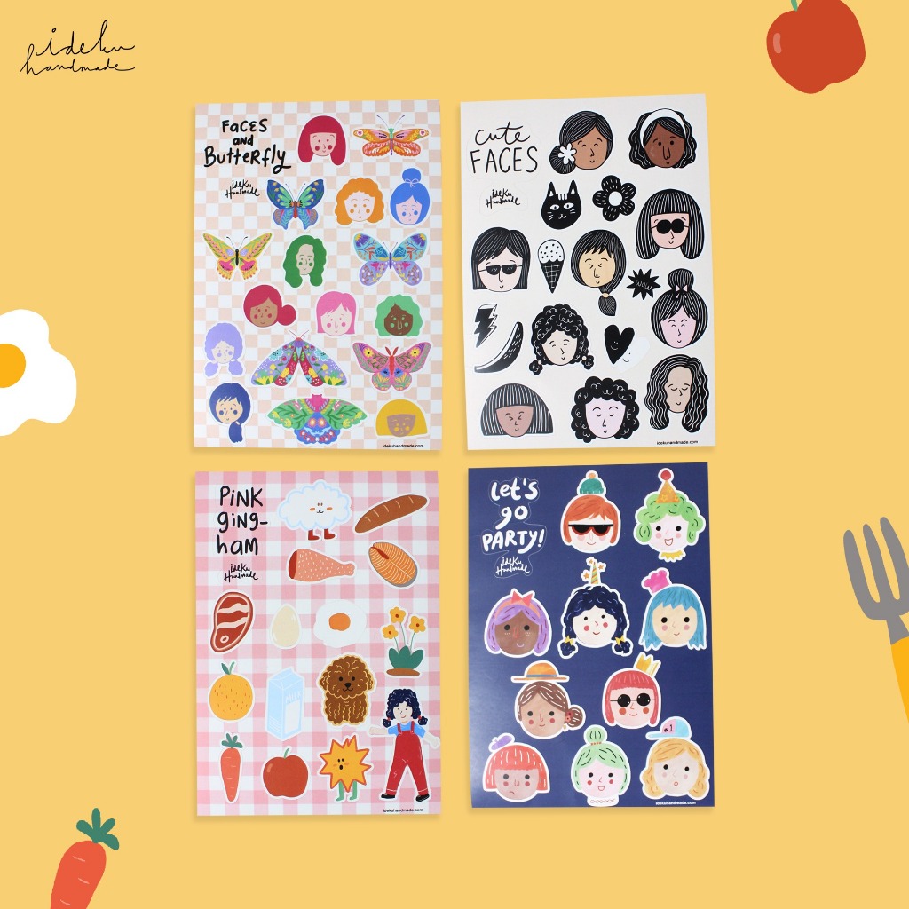 Sticker set yang terdiri dari 4 sticker dengan design Butterfly Faces, Cute Faces, Party Faces dan Pink Gingham