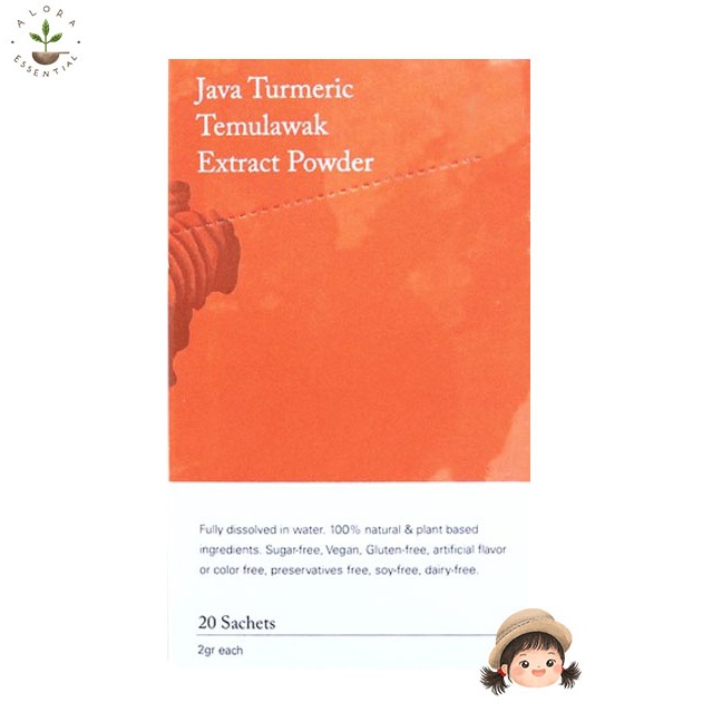 -1 box isi 20 sachets. Setiap 1 sachet mengandung 2 gram Java Turmeric/Temulawak EXTRACT POWDER.