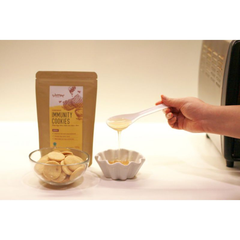 Sehangat Immunity Cookies: cookies YUMMY dengan kandungan madu dan jahe merah asli yang telah terbukti berkhasiat dan terkenal sebagai SUPER-FOOD dari generasi ke generasi.