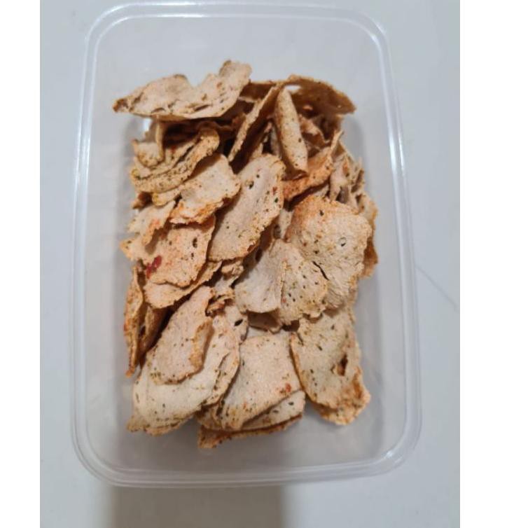 Basreng ini renyah dengan tekstur tipis dan tidak keras shingga mudah remuk.
