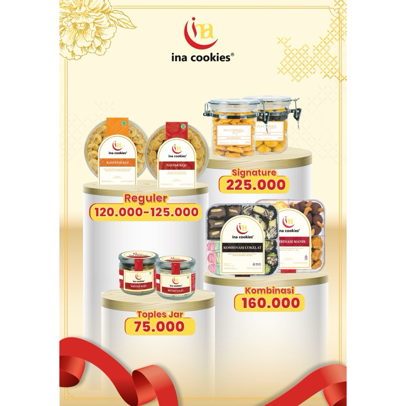 berbagai macam varian kue kering produksi Ina Cookies tersedia minicookies pouch dan toples, minicookids, toples regular, jar/kaca, dan kombinasi