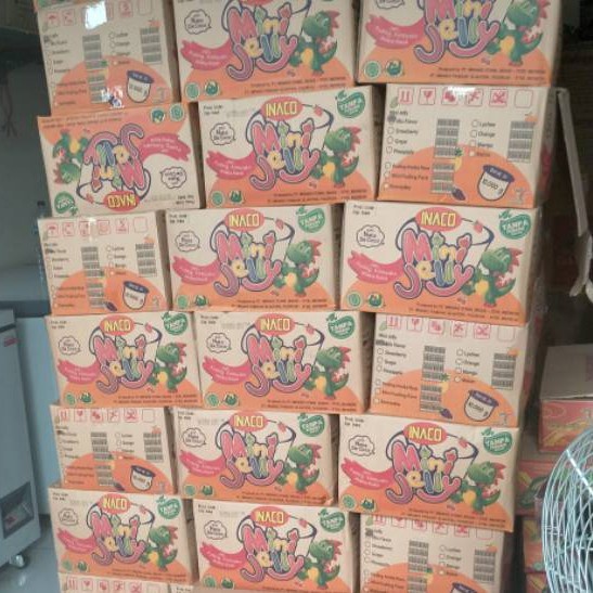 Air, gula, nata de coco, karagenan, pengatur keasaman asam sitrat, perisa (mangga, anggur, leci, stroberi, jeruk, nanas), sari buah (mangga, anggur, leci, stropberi, jeruk, nanas), pengatur kalium sorbat, pewarna makanan (poceau 4R CI 16255, tartrazin CI 19140, kuning FCF CI 15985, biru berlian CI 42090, karmoisin CI 14720).