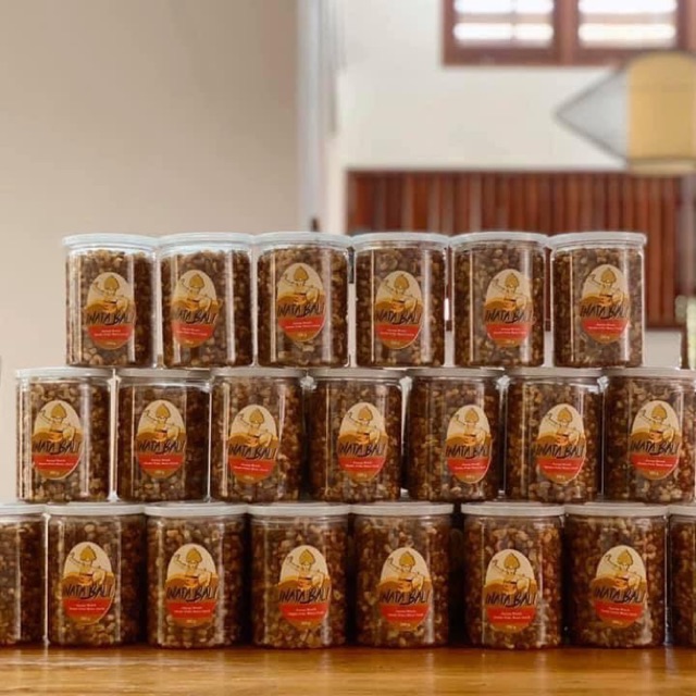 kacang kedele (mentik) khas bali, berbumbu manis asin pedas gurih yg dikemas cantik dalam toples. bisa dipake untuk oleh-oleh dari bali.