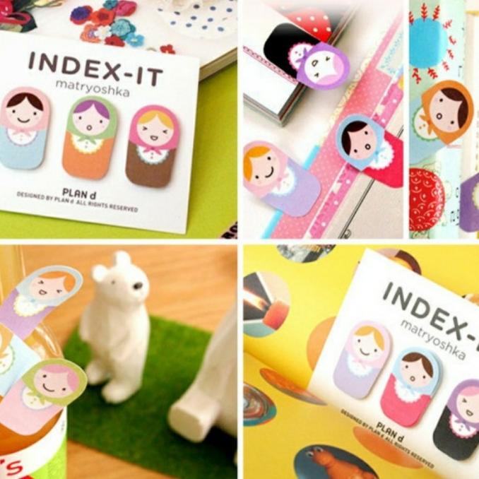 Post it berukuran mini bergambar boneka hias matryoshka.