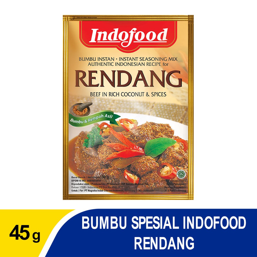 Bumbu Indofood Rendang siap lezatkan masakan rendang Anda tanpa perlu lama mengolah bumbu dapur. Rendang lezat dengan aroma khas pun siap disantap dalam waktu sekejap. Keunggulan :