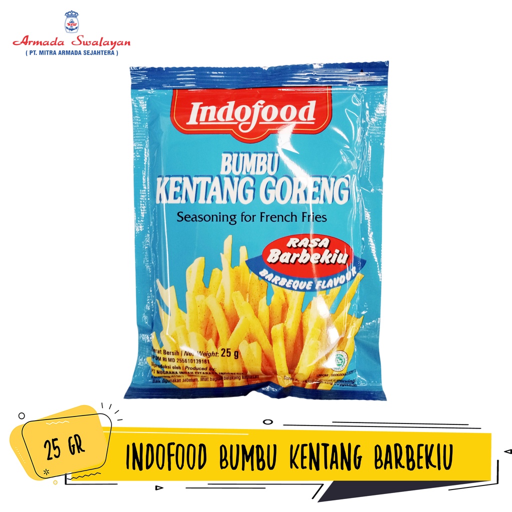 Indofood Bumbu Kentang Goreng adalah bumbu racik yang memudahkan Anda untuk membuat kentang goreng yang lezat dan praktis, rasa gurih, asin dan manis dari bumbu ini membuat Anda ketagihan ketika mengoonsumsi kentang goreng, menyantap kentang goreng dengan olahan sendiri namun bagaikan menyantap kentang goreng dari restoran mewah hanya dengan tambahan bumbu racik dari Indofood.
