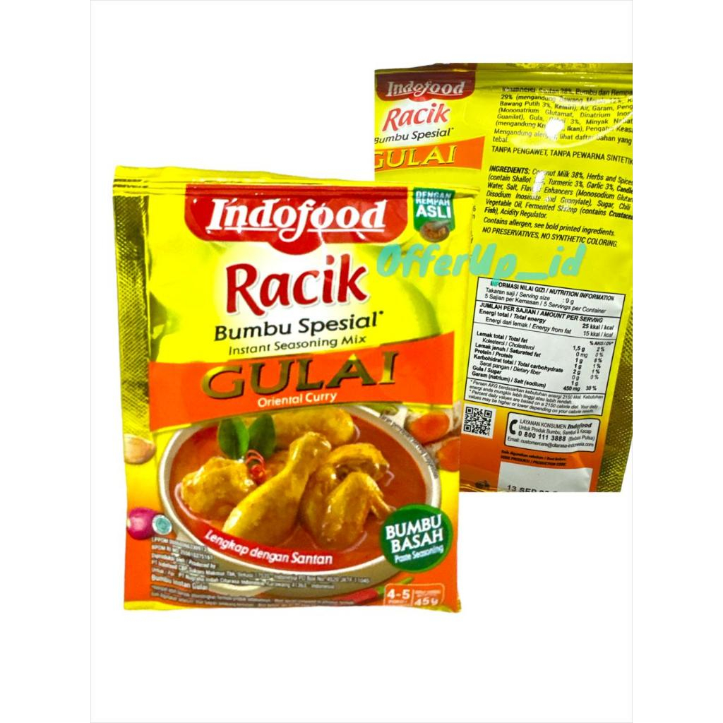 Bumbu Racik Indofood terbuat dari bumbu dan rempah-rempah asli yang telah dikeringkan tanpa penambahan bahan pengawet dan pewarna. Penggunaannya praktis sehingga Anda tak perlu mengulek sendiri, sekaligus menjaga dapur tetap bersih.