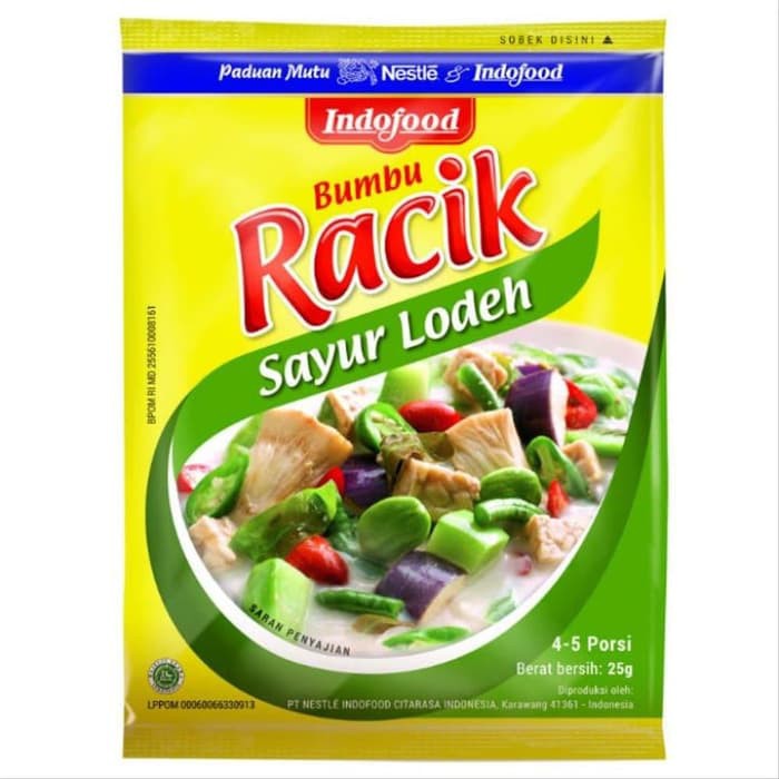 Indofood Bumbu Racik Sayur Lodeh 25 g, penggunaan bumbu adalah salah satu unsur wajib pelengkap masakan yang sudah dikenal sejak dahulu kala. Sejak masyarakat mengenal bumbu, cara masak pun mengalami perubahan. Masakan yang dibubuhi bumbu akan terasa lebih lezat dibandingkan dengan masakan yang dimasak tanpa menggunakan bumbu yang akan terasa hambar di lidah. Namun, saat ini racikan bumbu sudah banyak kita jumpai di berbagai minimarket, Bumbu Racik misalnya. Bumbu praktis satu ini dapat memudahkan Anda dalam hal mengolah berbagai makanan.
