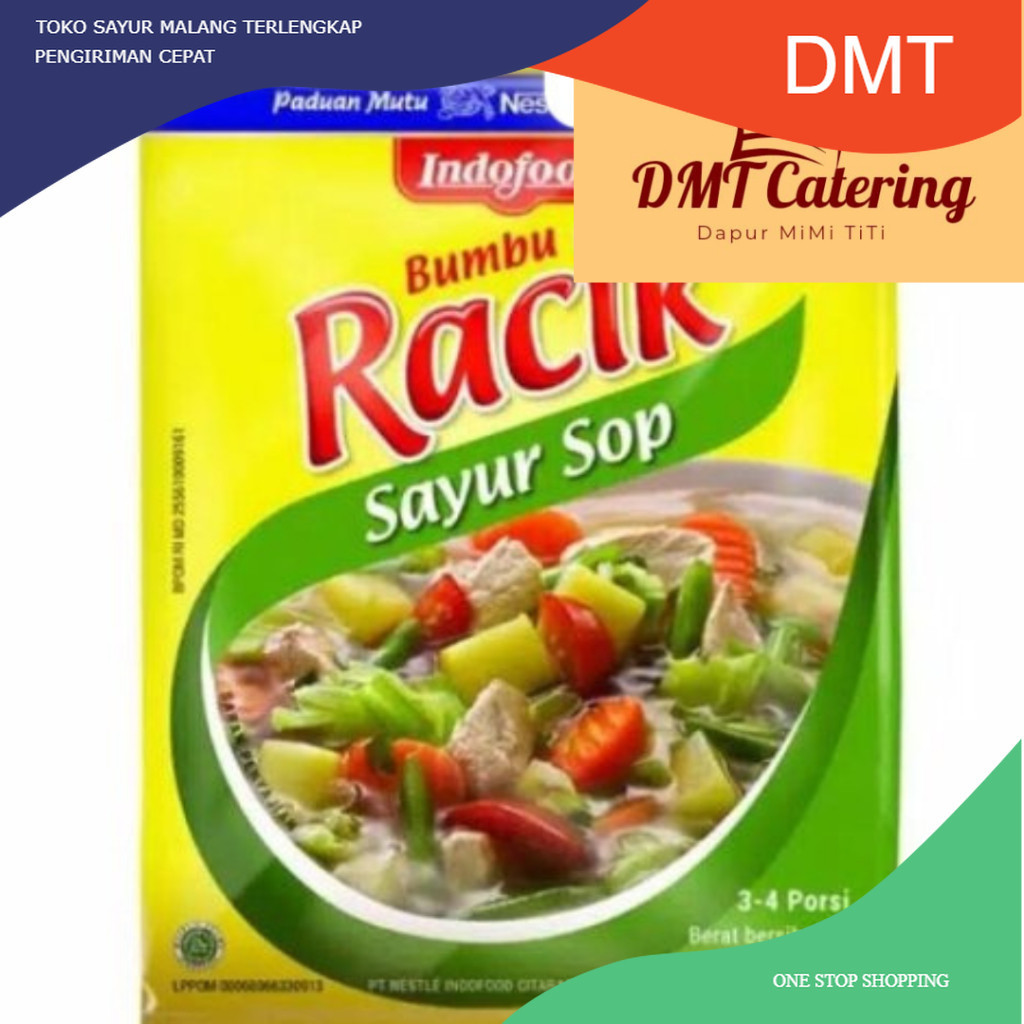 Indofood Bumbu Racik Sayur Sop terbuat dari bahan pilihan seperti bawang merah, gula, garam, minyak nabati, bawang putih, daun serai, daun salam. Diproses secara higienis, menghasilkan rasa yang nikmat seperti cita rasa khas Indonesia.