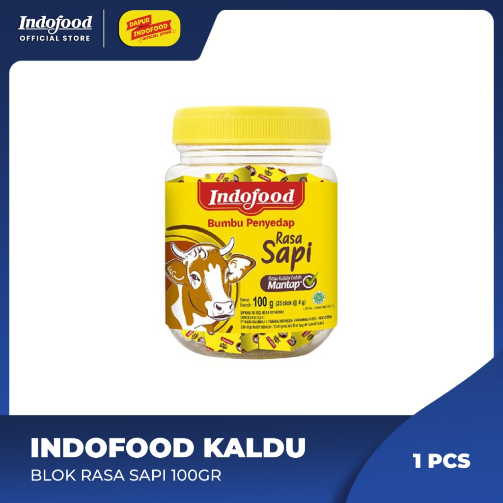 Indofood Kaldu Blok Rasa Sapi 100gr, kaldu blok siap pakai dengan rasa Sapi yang membuat masakan kaya rasa dan sesuai dengan berbagai menu masakan Indonesia. Sehingga masak jadi anti ribet, auto bisa!