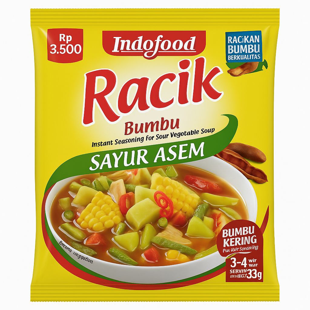 Hadirkan rasa segar dan khas masakan rumahan dengan Indofood Racik Bumbu Sayur Asem. Terbuat dari rempah pilihan dan asam jawa berkualitas, memberikan kuah segar, gurih, dan nikmat. Praktis digunakan untuk 3–4 porsi tanpa perlu tambahan bumbu lain—cukup tambahkan sayuran seperti jagung manis, kacang panjang, labu siam, dan kacang tanah untuk hidangan sayur asem yang autentik. Cocok disajikan sebagai menu makan siang keluarga.