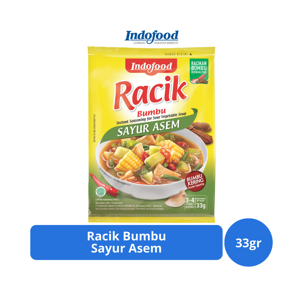 Bumbu Racik Indofood Sayur Asem terbuat dari bumbu dan rempah asli yang akan membuat sayur asem Anda tambah nikmat. Anda juga bisa menambahkan: