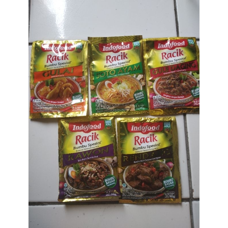 Racik merupakan merk bumbu masak instan dan praktis dari Indofood. Indofood Racik Bumbu untuk rendang, gulai, soto ayam, gule daging, rawon yang gurih, sedap dan nikmat. Bumbu yang diracik dari bumbu dan rempah-rempah alami. Campuran bumbu ini merupakan ramuan praktis untuk memasak enak di rumah Hanya tinggal mengikuti petunjuk penyajian, siapa pun bisa menjadi koki handal berkat bumbu Racik Indofood.