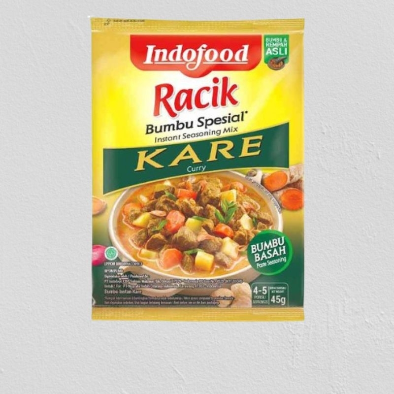Siapkan 1/2 kg daging ayam, potong sesuai selera dan sayuran (kentang, wortel & kol), sesuai selera. Tumis 1 bungkus indofood bumbu instant kare hingga harum, tambahkan 2 gelas air (400mL) lalu masukkan daging ayam. Masak hingga daging ayam empuk dan kuah mengental sesuai selera. Tambahkan sayuran, masak hingga matang. Sajikan panas.