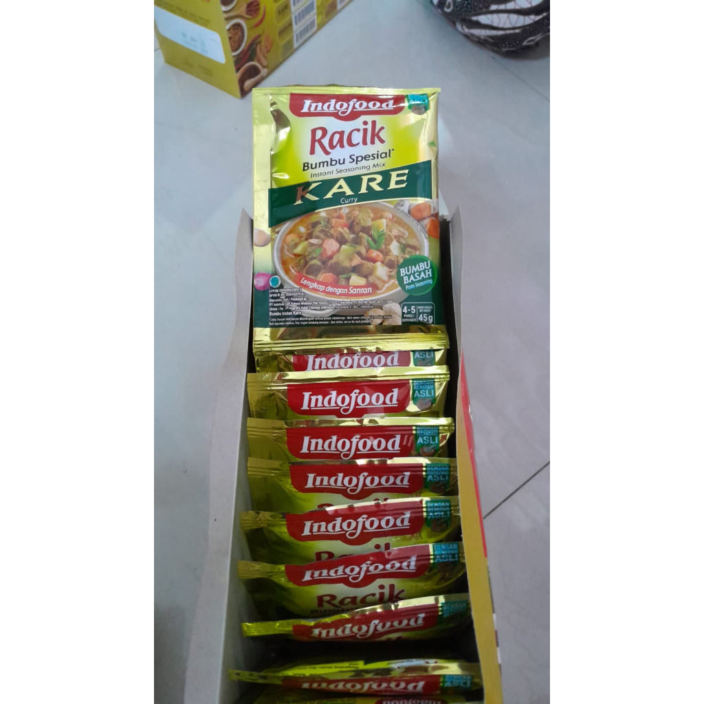Indofood Racik Kare adalah bumbu kare basah siap pakai dengan cita rasa nusantara yang istimewa. Bumbu ini terbuat dari santan, rempah-rempah, penguat rasa, gula, garam, bawang merah, bawang putih, persia ayam, minyak nabati, dan pengatur keasaman.