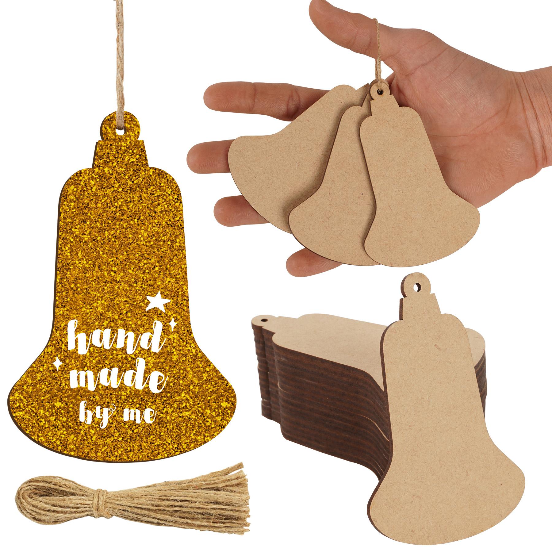 Inkdotpot 40 шт. колокольчик деревянный орнамент с отверстиями 3,5 незавершенные предварительно просверленные ломтики натурального дерева для поделок деревянные DIY рождественские украшения подвесные веревки 3.5-4 cm коричневый