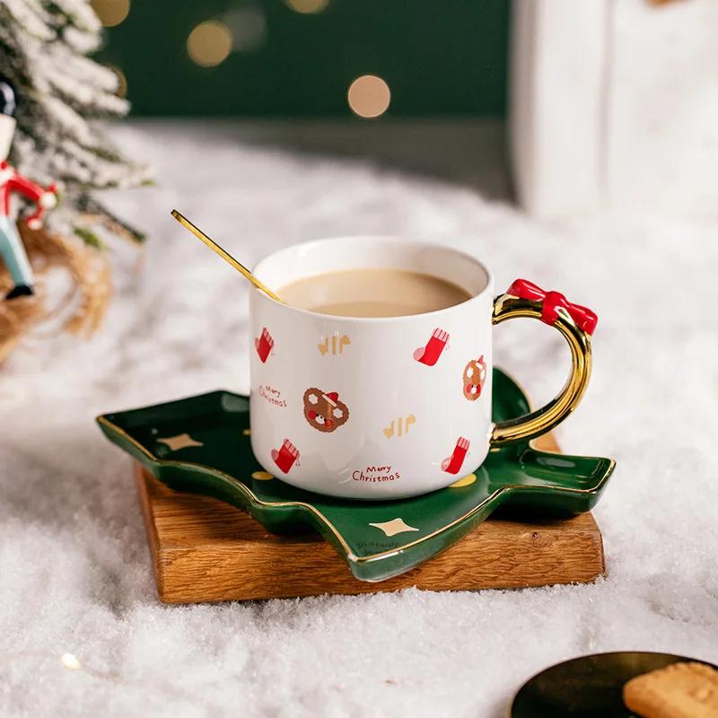 Ins Рождественский подарок Керамическая изысканная кофейная чашка и блюдце Девушка Креативный мультфильм