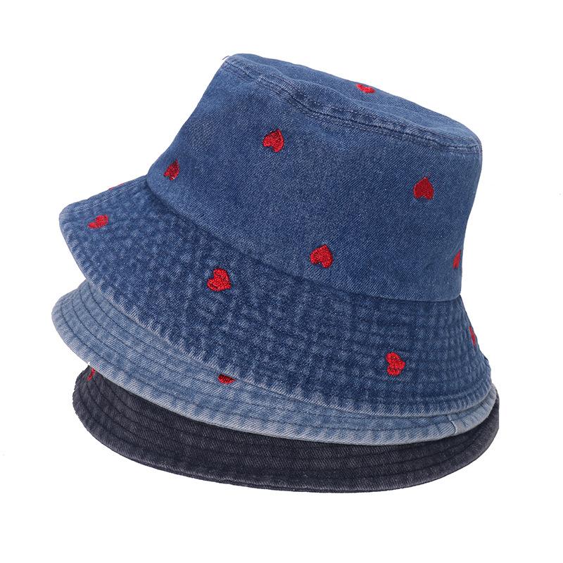 Ins японская корейская модная шляпа-тазик, повседневная универсальная солнцезащитная шляпа от солнца, джинсовая шляпа-ведро с вышивкой Love, детская шляпа