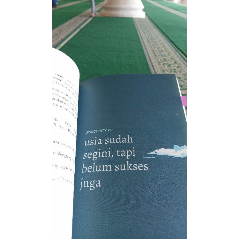 Tapi, di sinilah kamu, menyentuh buku ini, trying to feel something, trying to be something, dan kamu sudah ada di langkah yang tepat, karena buku ini, ada 45 bab yang membantumu berdamai dengan insecurity-mu.