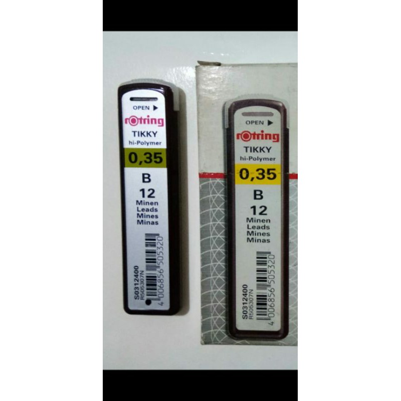 Isi pensil hi-polymer merek Rotring tersedia ukuran 0.35, 0.5 dan 0.7