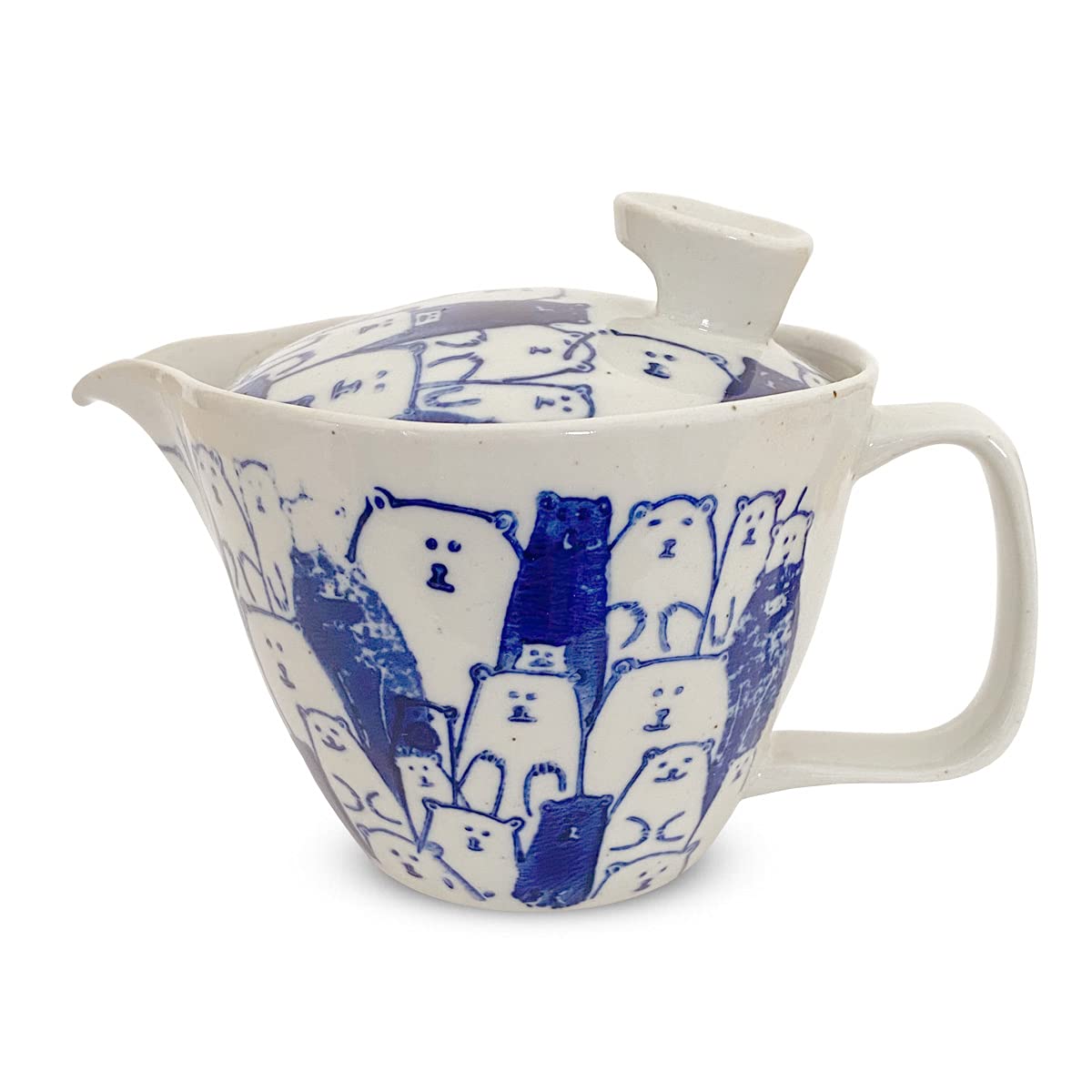 J-kitchens Teapot with Strainer, 240ml Capacity, for 1-2 People, Hasami Ware, Made in Japan, Bear Design, Blue, S173865