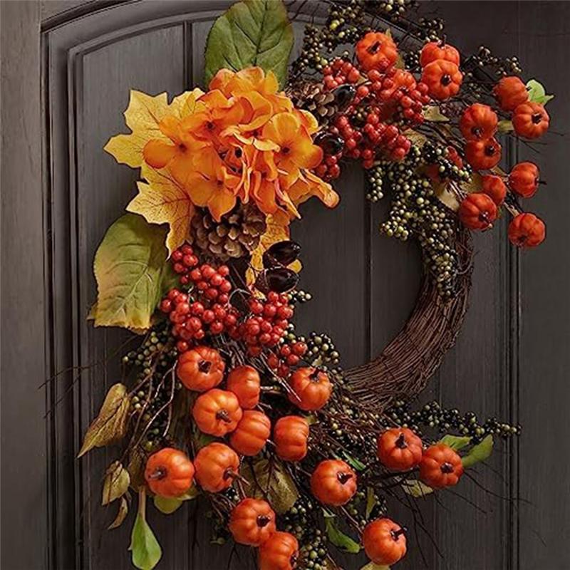 J1UL1N Осенний Декор Осенний Венок Для Входной Двери Тыквы Ягоды Венок Украшения Для Осени Дня Благодарения Урожая Фермерский Дом Дом