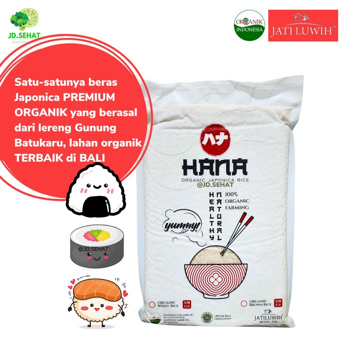 Beras Jepang Hana Japonica Organik By Jatiluwih 2kg / Bagus Untuk Sushi