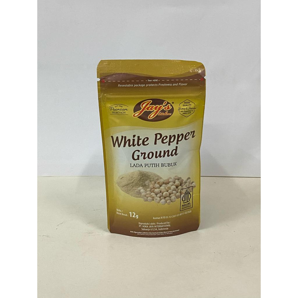 Merica putih sering digunakan dalam masakan yang membutuhkan rasa pedas ringan tanpa menambah warna hitam, seperti pada sup, saus putih, dan hidangan yang memerlukan rasa pedas yang halus. Produk **JAYS** sendiri adalah merek yang memproduksi berbagai bumbu dan rempah, termasuk merica putih giling.