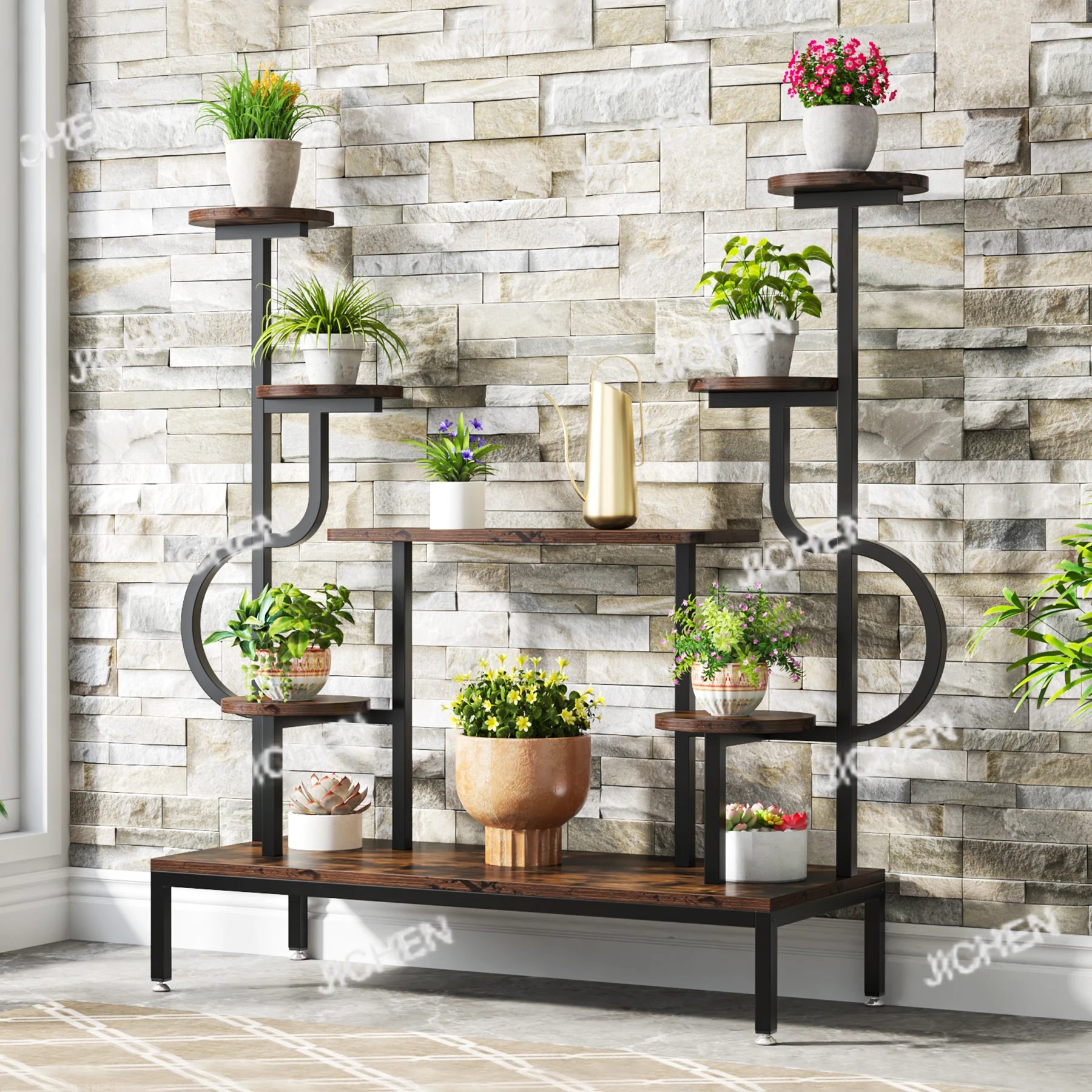 JC 8-Tier Metal Plant Stand, Large Tall Plant Shelf For Multiple Plants, Round & Square Boards, Ladder Flower Rack