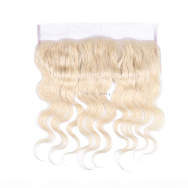 613 blonde human hair frontal closure 130% density blonde brazilian virgin body wavy hair lace closure with baby hair, Black;brown