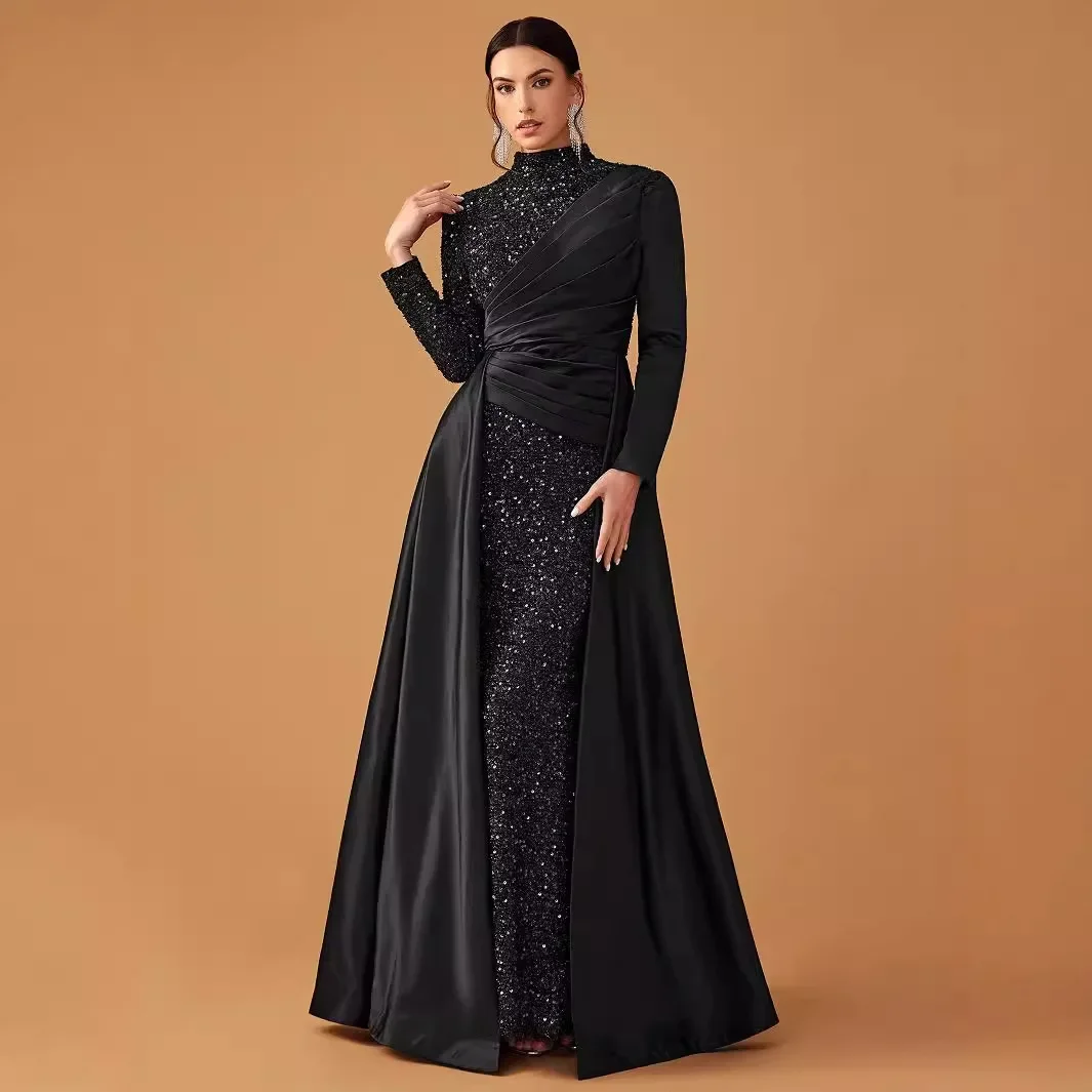 JDY Новое модное женское черное бальное платье с длинным рукавом и высокой талией на заказ, коктейльное вечернее платье макси для торжественных случаев