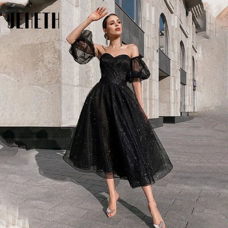 JEHETH очаровательные черные трапециевидные вечерние платья 2023 милое без бретелек с открытой спиной длиной ниже колена вечернее бальное платье на заказ JEHETH Очарование Черное платье 2023 Sweetheart Без бретелек чай