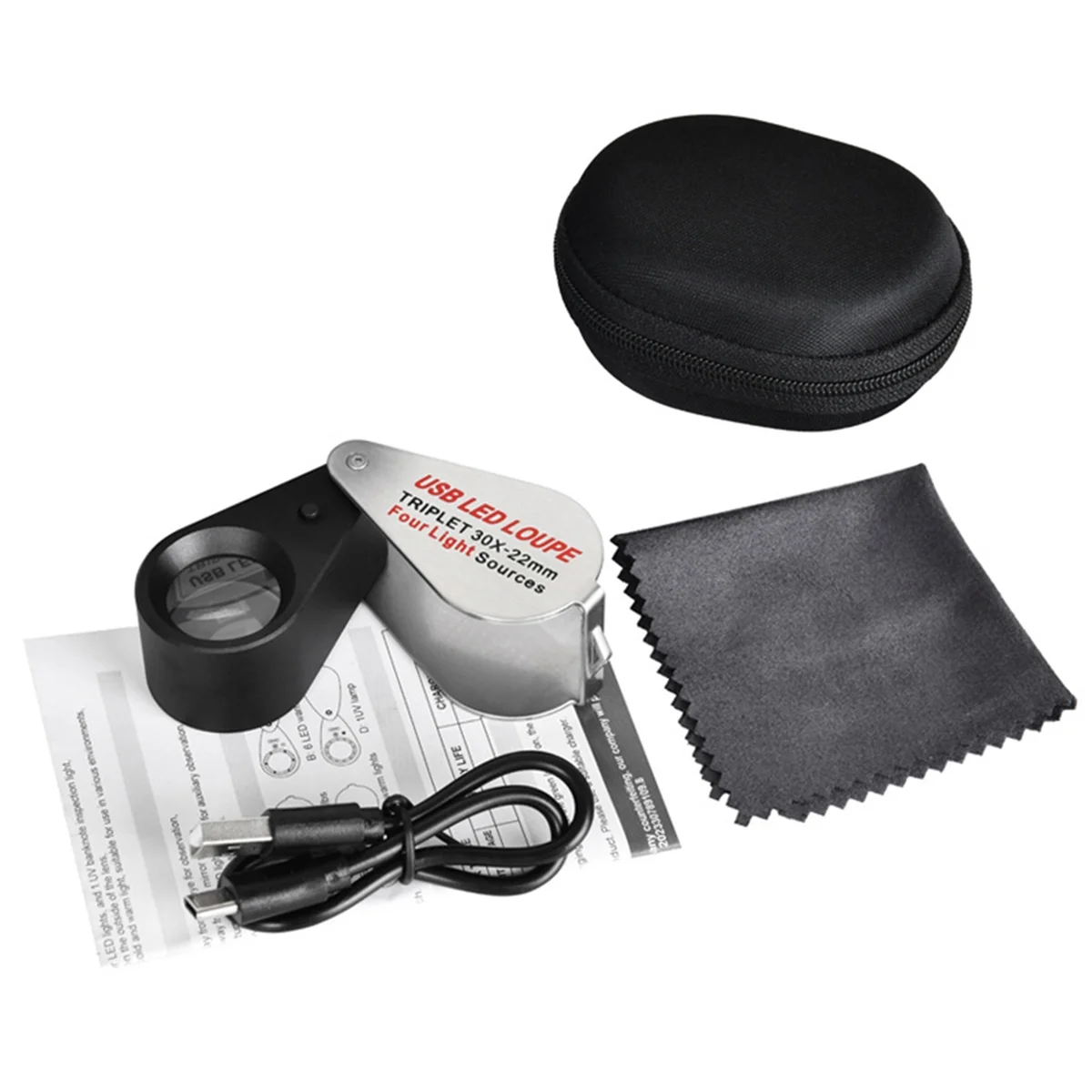 JHD перезаряжаемый четырехцветный источник света 13 светодиодная лупа Алмазная ювелирная лупа ожерелье драгоценный камень УФ-лампа мини карманный 30X