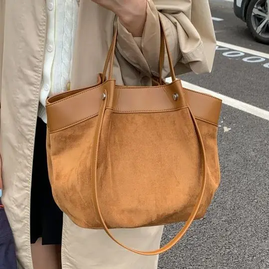 JIAERDI Ретро-сумка-тоут с морщинами, женская большая вместительная замшевая простая сумка на плечо, женские повседневные повседневные сумки для подмышек, новинка 2023 года