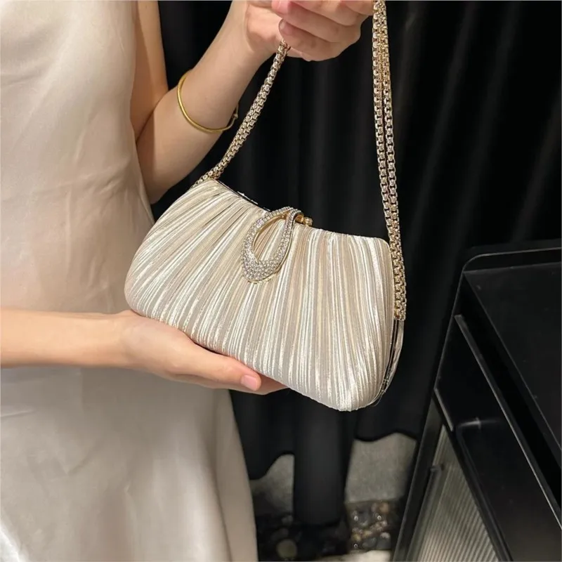 JIAERDI атласная плиссированная вечерняя сумка, женская модная роскошная дизайнерская сумка на плечо, женская блестящая цепочка, шикарная новинка 2025, сумка через плечо