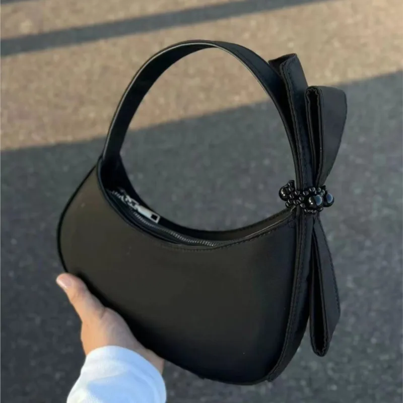 JIAERDI милая милая сумка-тоут с бантом, женская сумка в форме полумесяца, большая вместительная сумка на плечо, женская элегантная черная сумка в стиле Лолиты, шикарная 2025