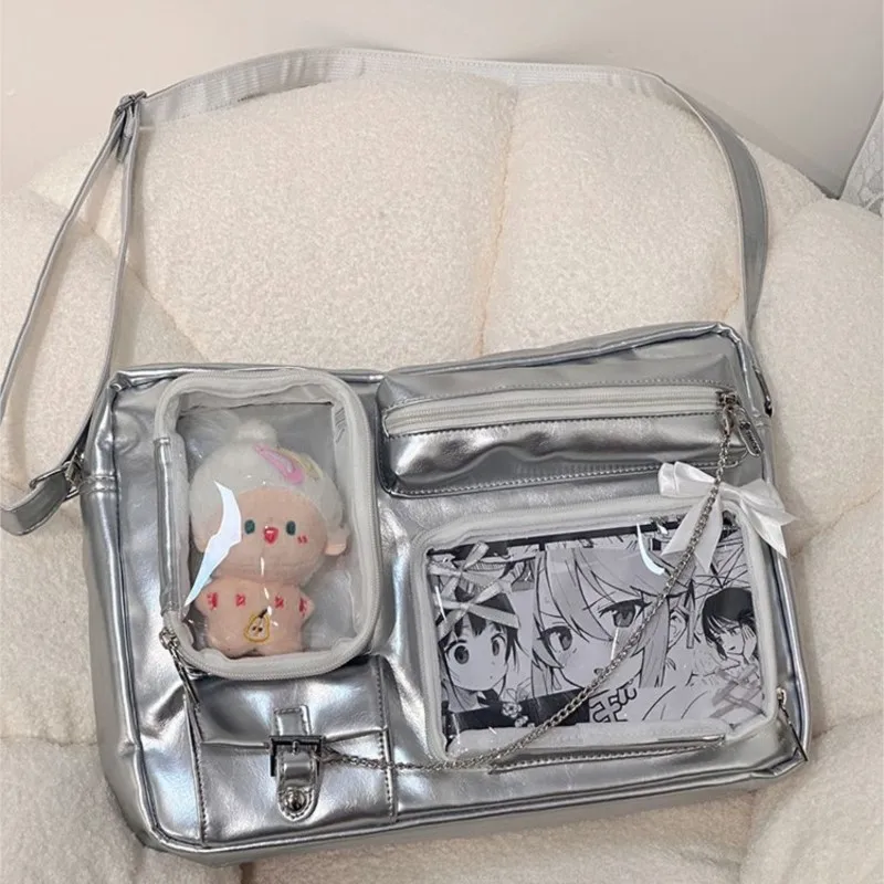 JIAERDI японская сумка-тоут с цепочкой в стиле Харадзюку, женская кожаная большая вместительная серебряная сумка на плечо, женская повседневная прозрачная сумка Ita в стиле аниме