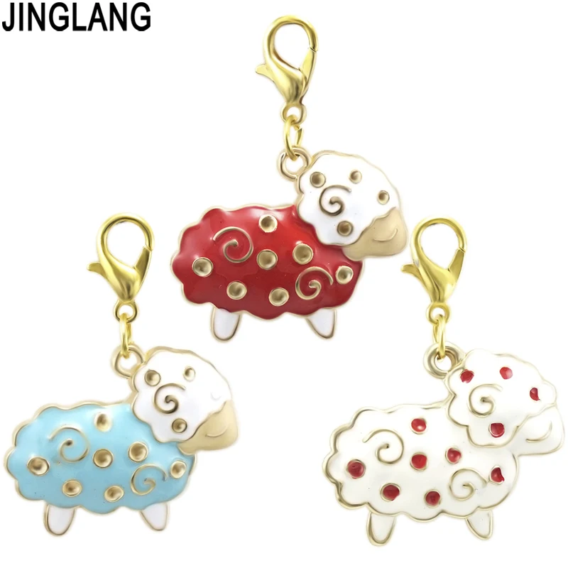 JINGLANG золотые амулеты в виде животных с застежкой-лобстером болтающиеся белые эмалированные Овцы DIY амулеты для изготовления ювелирных изде...