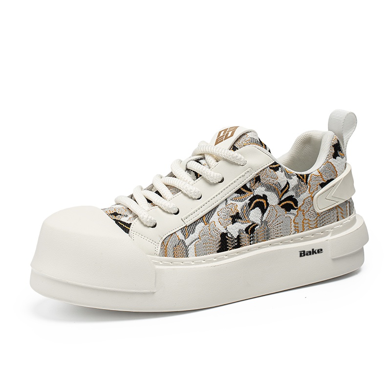 BAKE Скользоустойчивые износостойкие легкие низкие скейтерские кроссовки мужские бело-черные, цвет White Black