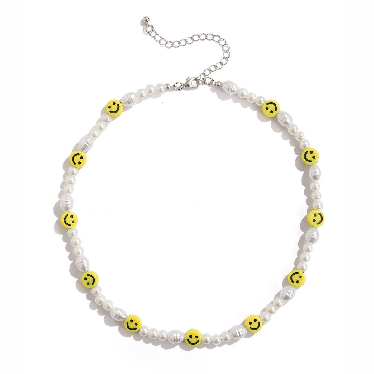 JMXD- Модная мужская эксклюзивная вещь · Однослойная креативная цепочка на ключицу с жемчужинами особой формы · Мягкое керамическое украшение в виде смайлика в виде солнечного сияния