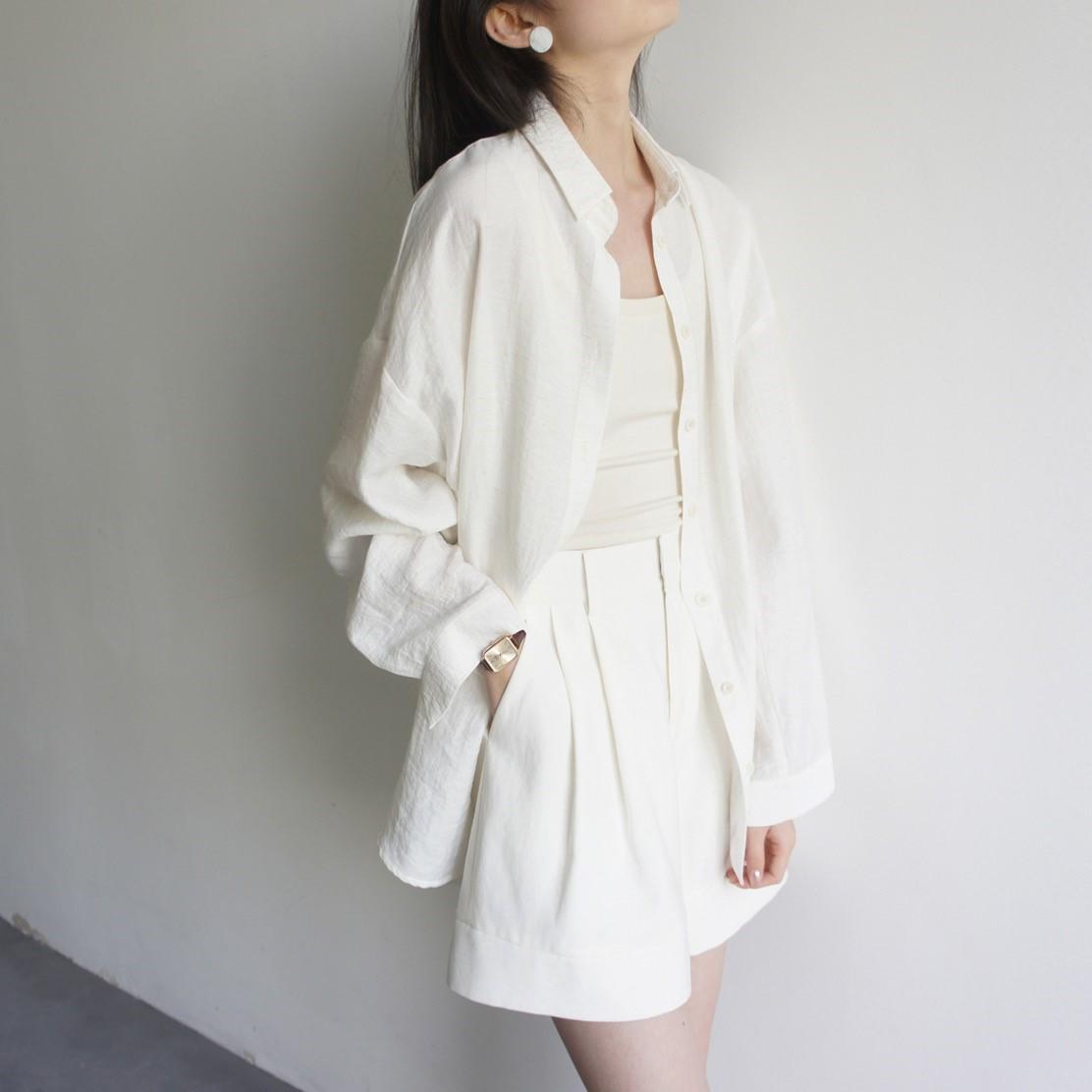 JOJOZ Женская блузка цвета слоновой кости свободного кроя с длинным рукавом из льна и тенселя - Прохладная, Натуральная, Защита от солнца, Летняя простота. Large слоновая кость/белый