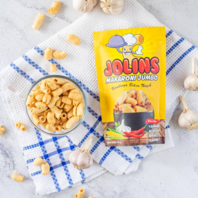 JOLINS merupakan snack makaroni yang terbuat dari bahan-bahan pilihan yang berkualitas, diproses secara higienis serta tanpa bahan pengawet.