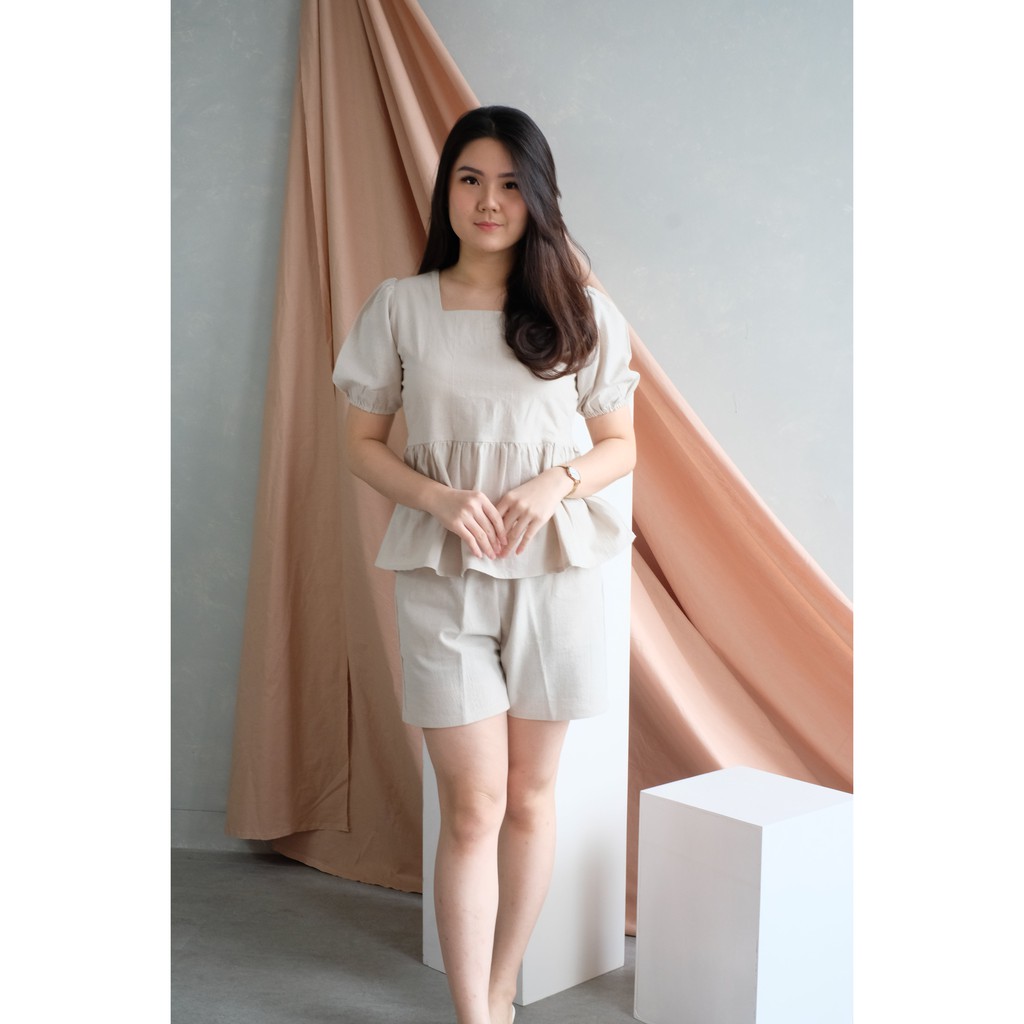 Bagian pinggang celana dilengkapi dengan karet dan celana kantong