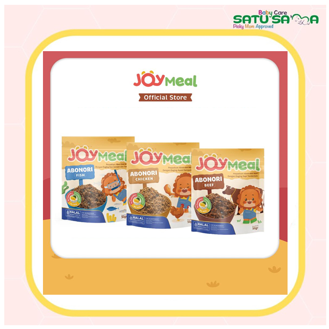 JoyMeal AboNori merupakan perpaduan abon dan nori pertama di Indonesia yang menggunakan DAGING IKAN SALMON & TUNA, DAGING AYAM KAMPUNG, dan DAGING SAPI TENDERLOIN. Dengan Japanese Nori, Australian Cheddar Cheese, dan Wijen yang membuat rasanya lebih gurih dan crunchy, serta mengandung Zat Besi, Kalsium, Fosfor dan Vitamin B1 yang dibutuhkan si Kecil selama masa pertumbuhannya, membuat momen makan Si Kecil menjadi lebih nikmat, lahap, dan bergizi. Produk JoyMeal AboNori dibuat dari daging asli dengan bahan-bahan yang berkulitas terbaik dan aman, tanpa MSG, tanpa pengawet, dan Halal. Kandungan gulanya pun rendah karena memakai Gula Nira Organik. Moms tidak perlu kuatir bila anak susah makan atau GTM karena JoyMeal AboNori bisa menjadi solusi yang praktis. Dengan perpaduan abon ikan salmon dan tuna, daging ayam kampung yang lebih sehat dan lebih tinggi protein, serta daging sapi tenderloin yang lebih empuk dan berserat lembut, JoyMeal AboNori cocok dikonsumsi untuk segala usia bahkan untuk dijadikan makanan pendamping si Kecil sejak usia 8 bulan MPASI.