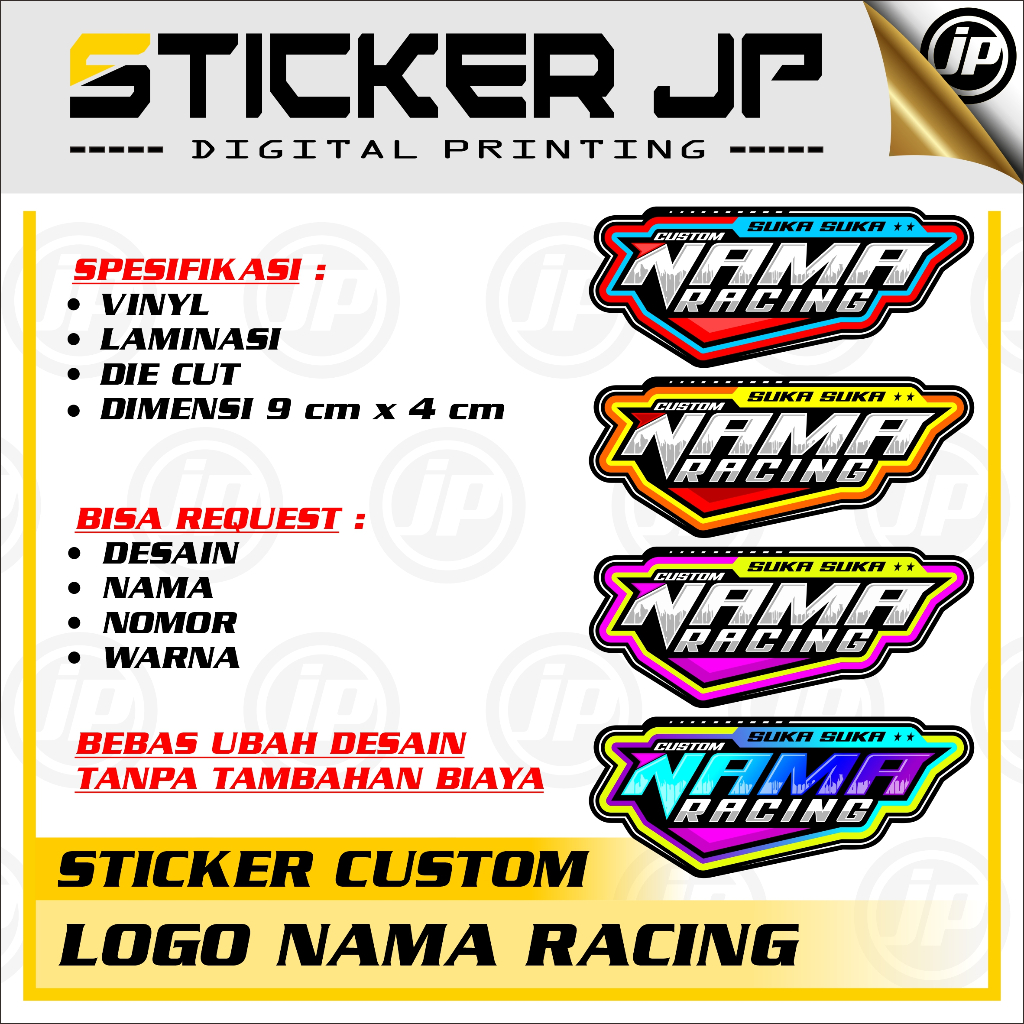 JPUV Stiker RACING Custom Design Suka-suka - Sticker Custom Satuan Nama Logo Stiker