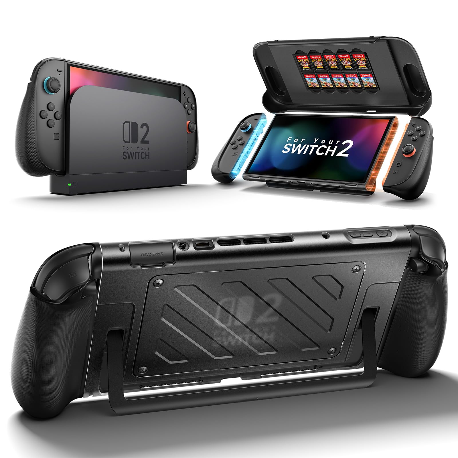 JSAUX Раздельный защитный чехол для Switch, средняя рамка из ТПУ, лицевая панель из ПК, эргономичный хват, вмещает 10 игровых карт, подставка, совместимый, амортизация, защита от царапин